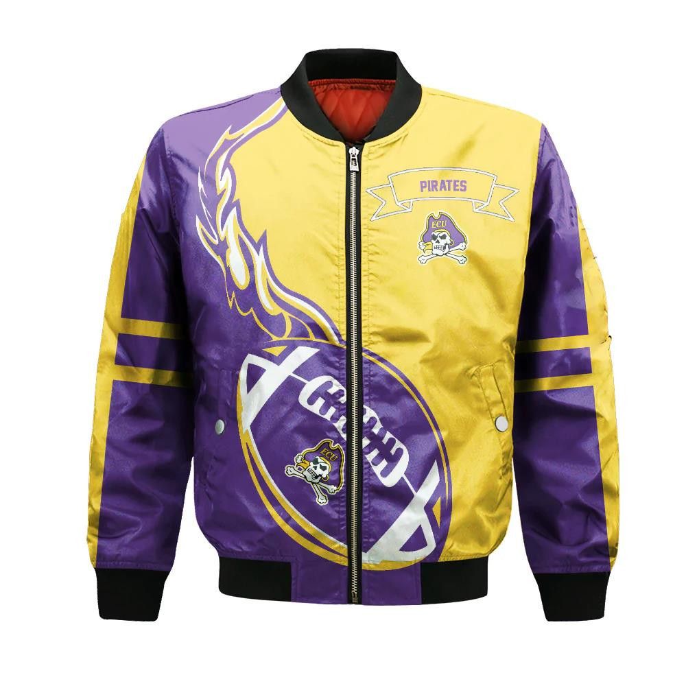 East Carolina Pirates Bomber Jacket 3D Printed Flame Ball Pattern