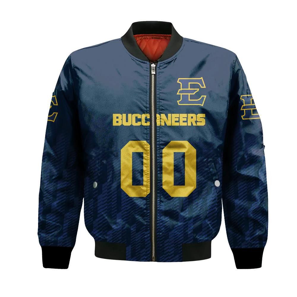 East Tennessee State Buccaneers Bomber Jacket 3D Printed Team Logo Custom Text And Number