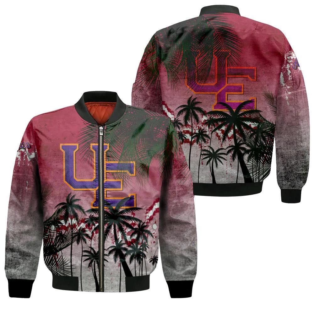 Evansville Purple Aces Bomber Jacket 3D Printed Coconut Tree Tropical Grunge
