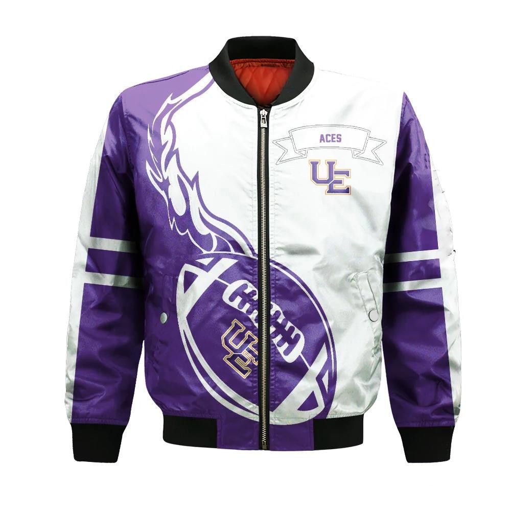Evansville Purple Aces Bomber Jacket 3D Printed Flame Ball Pattern