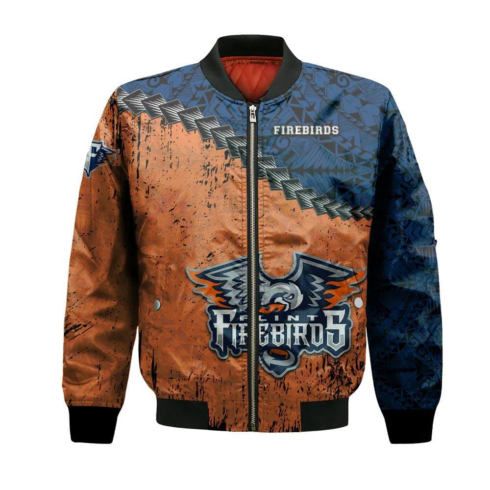 Flint Firebirds Bomber Jacket 3D Printed Grunge Polynesian Tattoo