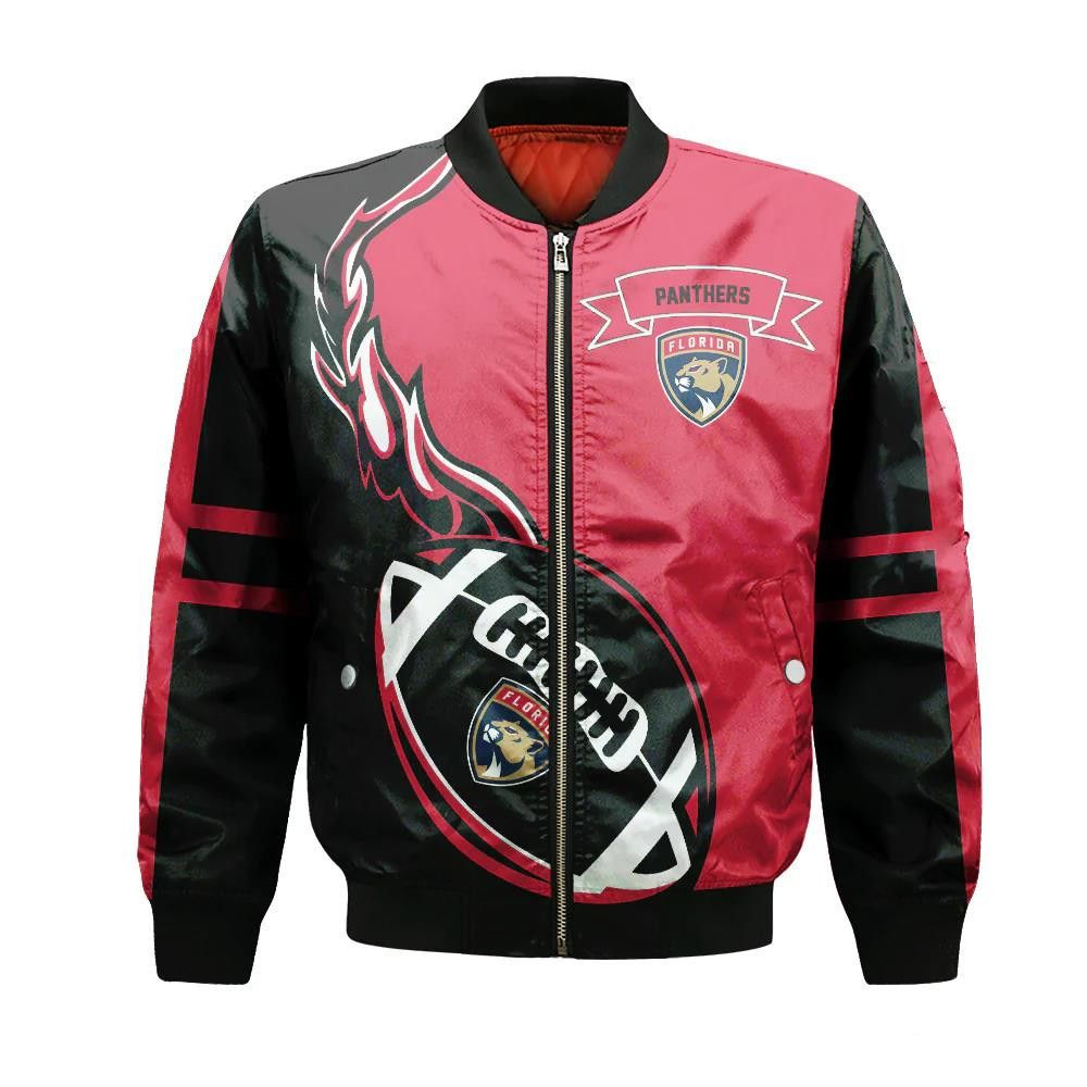 Florida Panthers Bomber Jacket 3D Printed Flame Ball Pattern