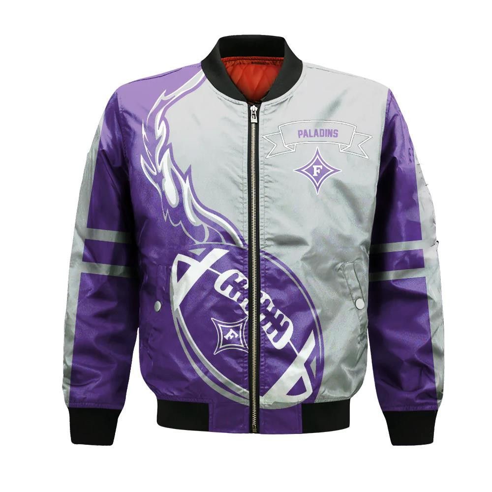 Furman Paladins For Men Women Bomber Jacket 3D Printed Flame Ball Pattern