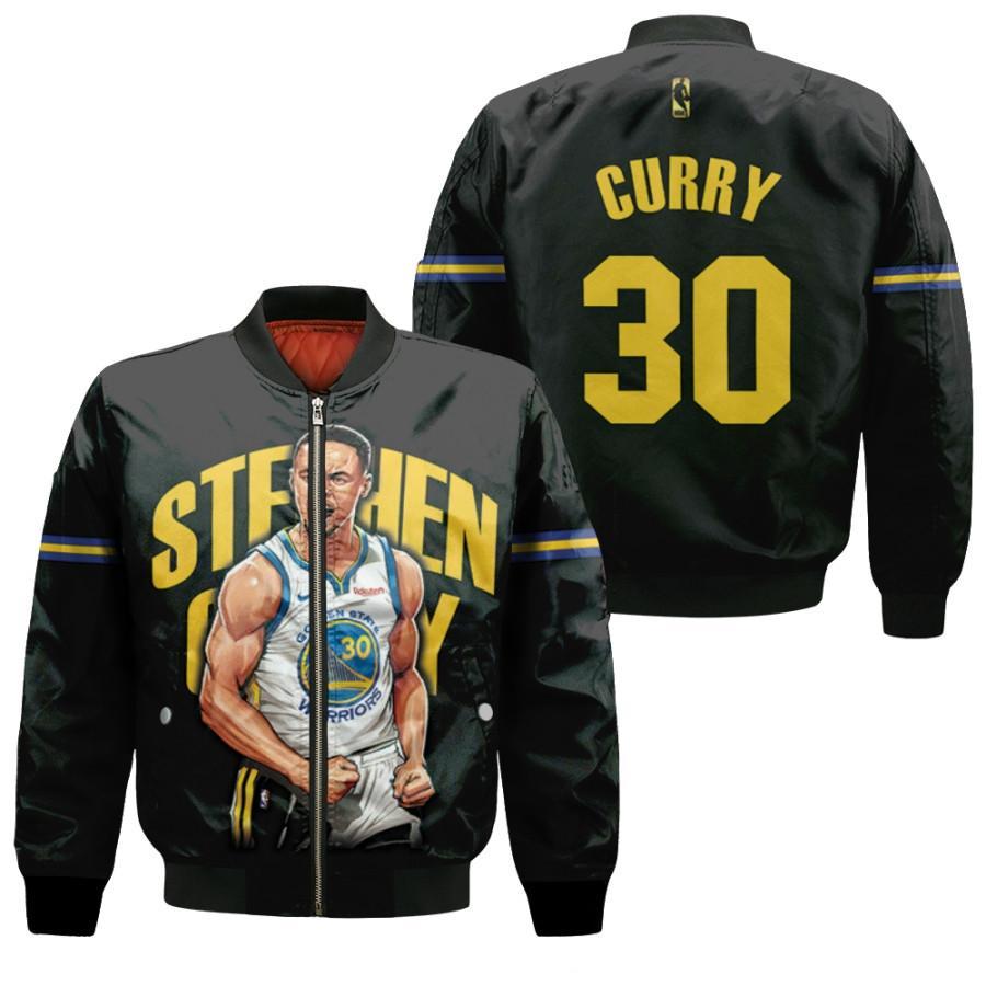 Golden State Warriors Stephen Curry 30 NBA 2021-22 City Edition Black Gift For Warriors Fans Bomber Jacket BJ00614