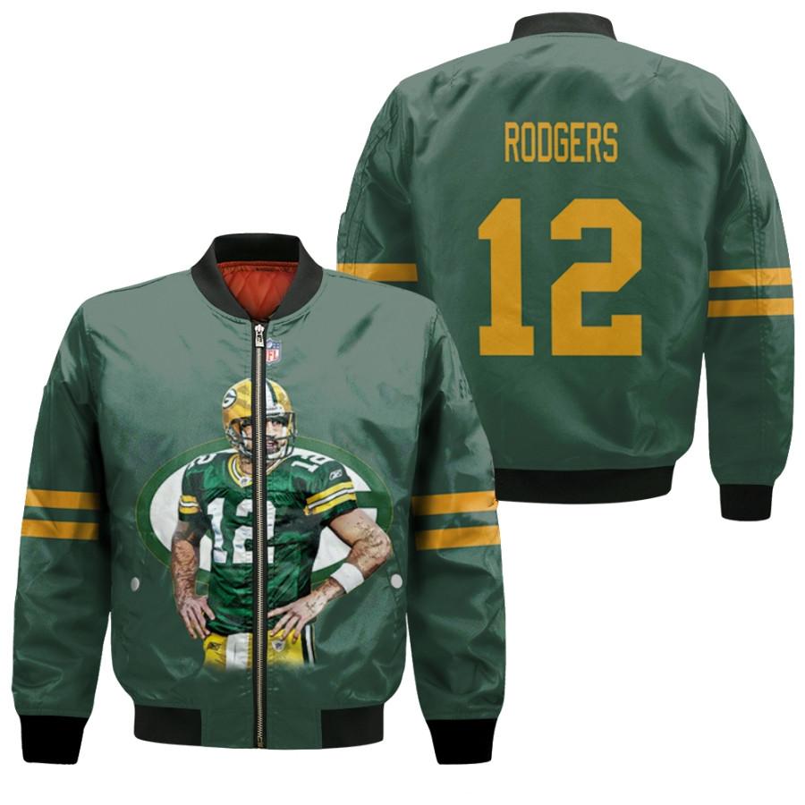 Green Bay Packers Aaron Rodgers 12 NFL Best Legends Green Gift For Packers Fans Bomber Jacket BJ03479