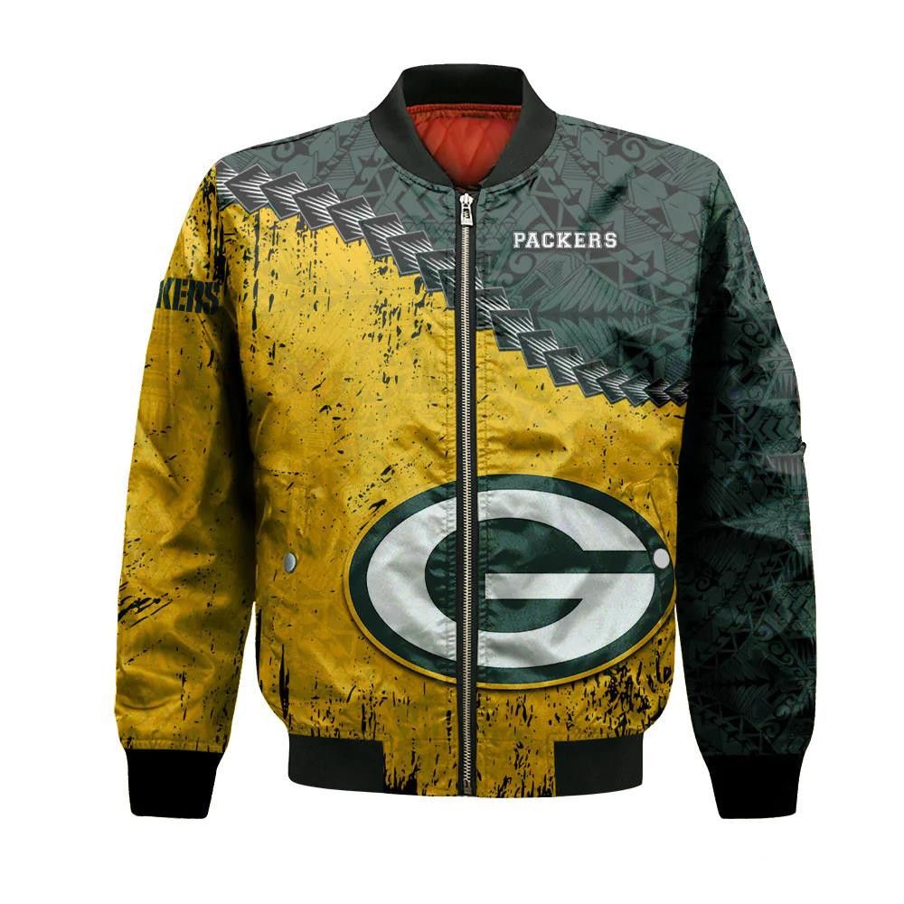 Green Bay Packers Bomber Jacket 3D Printed Grunge Polynesian Tattoo