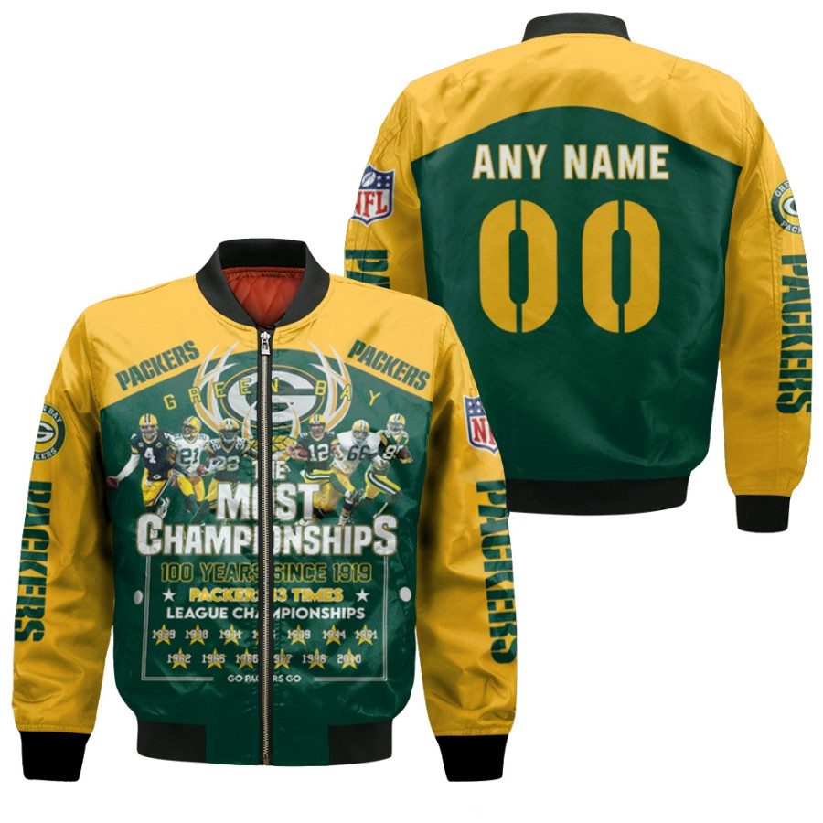 Green Bay Packers DACAe Most Champions 100 Years Since 1919 NFL Gift With Custom Name Number For Packers Fans Bomber Jacket BJ01052