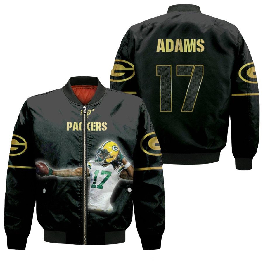 Green Bay Packers Davante Adams 17 NFL Legendary Captain Black Gift For Packers Fans Bomber Jacket BJ00501