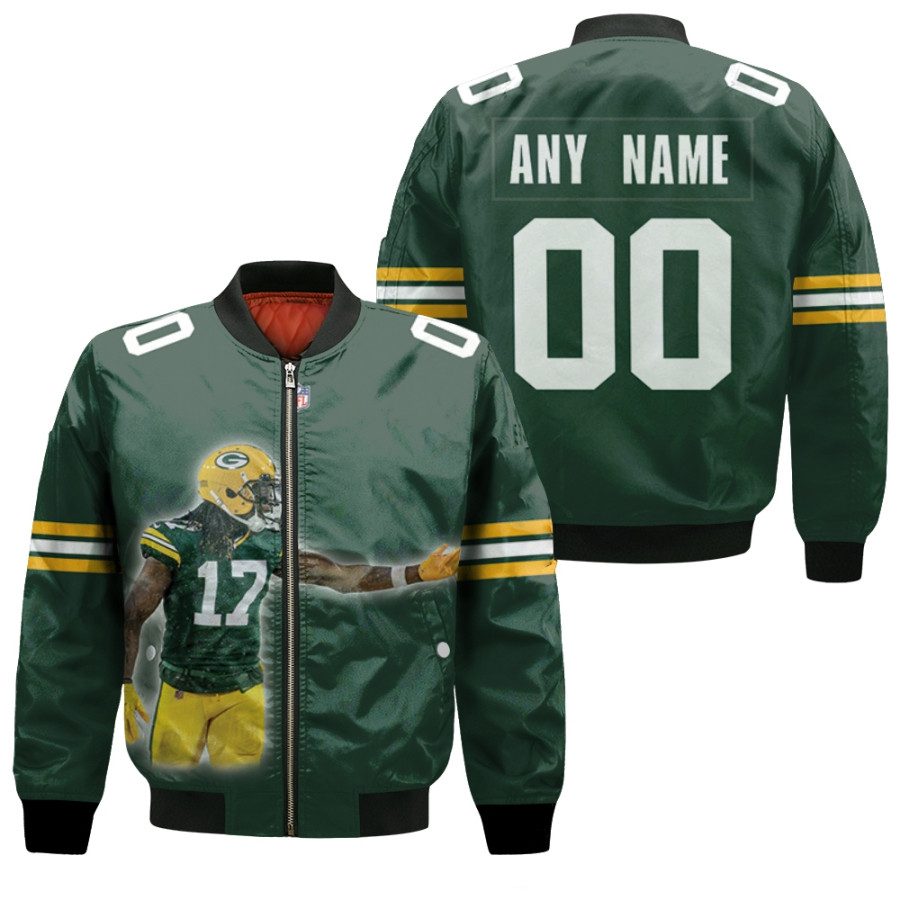 Green Bay Packers Davante Adams 17 NFL Team Green Jersey Style Gift With Custom Number Name For Packers Fans Bomber Jacket BJ00134