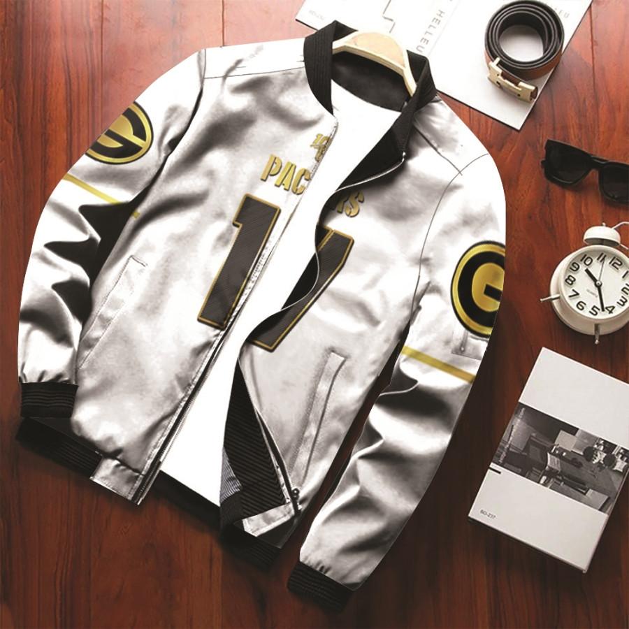 Green Bay Packers Davante Adams #17 NFL Team Logo White 100th Season Golden Edition Jersey Style Gift For Packers Fans Bomber Jacket BJ00572