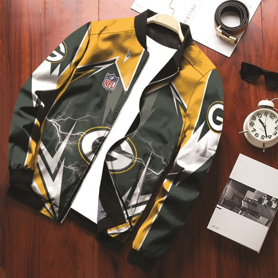 Green Bay Packers Lightning NFL Logo American Football team Gift For Packers Fans Bomber Jacket BJ00682