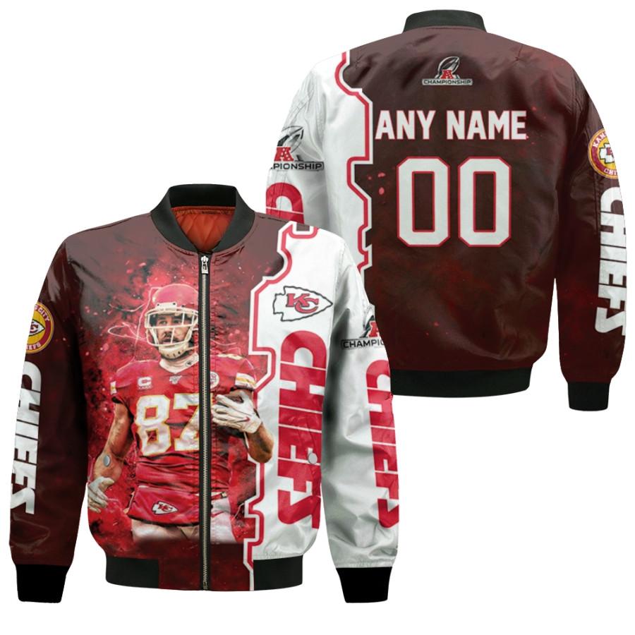 Kansas City Chiefs Travis Kelce 00 NFL Team AFC Championship 2025 Red Chiefs Fans Bomber Jacket DACA0341