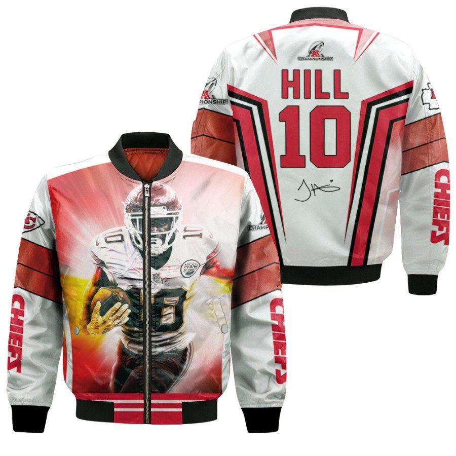 Kansas City Chiefs Tyreek Hill 10 AFC Championship 2025 White Jersey Style 3D Allover Gift For Chiefs Fans Hill Fans Bomber Jacket DACA0215