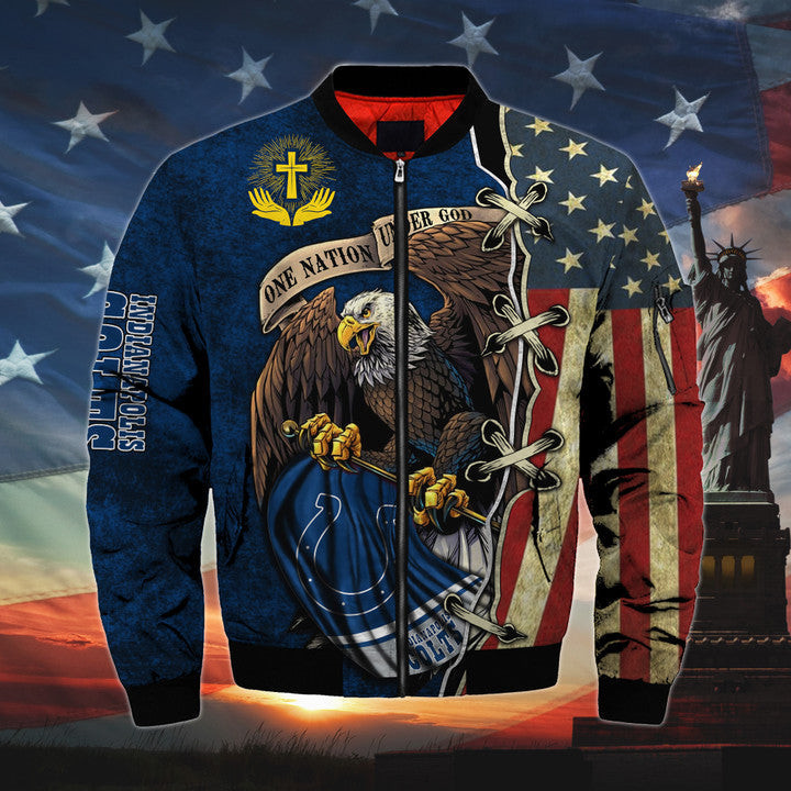 Men锟絪 One Nation Under God Indianapolis Colts Bomber Jackets DACA1119