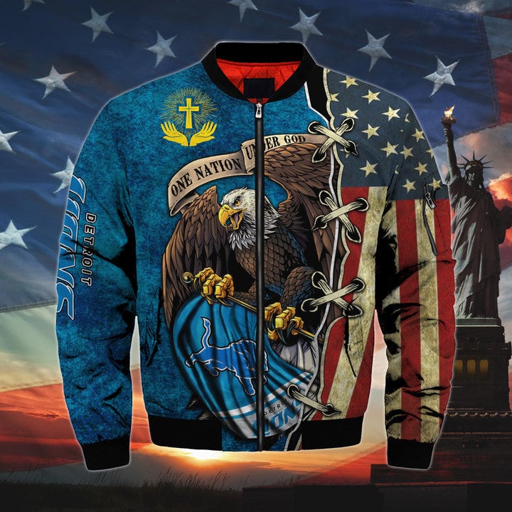 Mens One Nation Under God Detroit Lions Bomber Jackets
