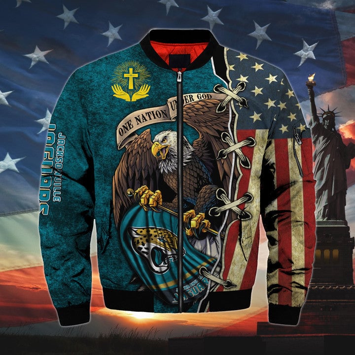 Mens One Nation Under God Jacksonville Jaguars Bomber Jackets