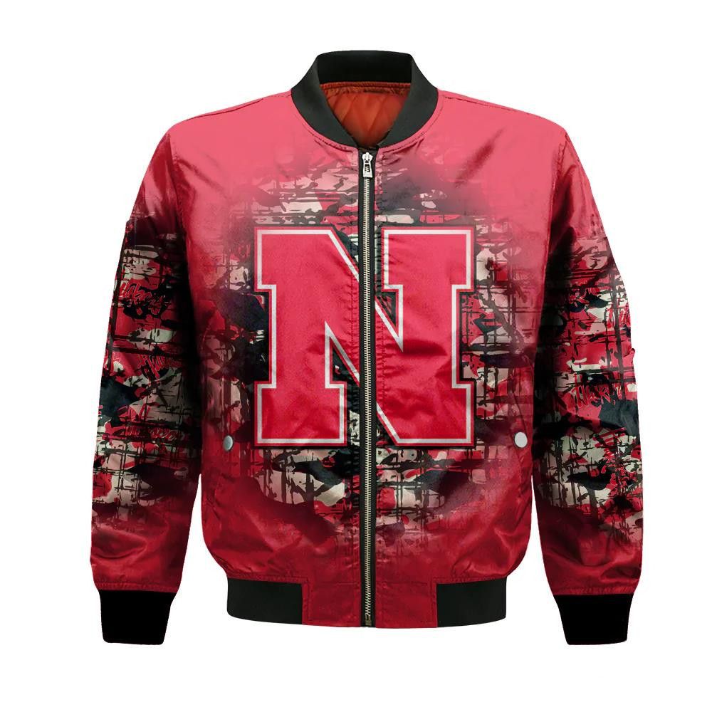 Nebraska Cornhuskers Bomber Jacket 3D Printed Camouflage Vintage
