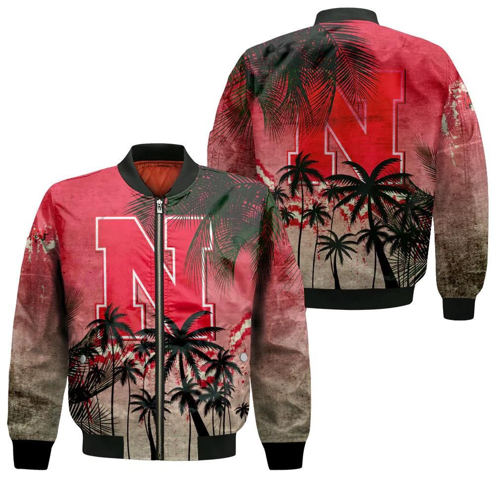 Nebraska Cornhuskers Bomber Jacket 3D Printed Coconut Tree Tropical Grunge
