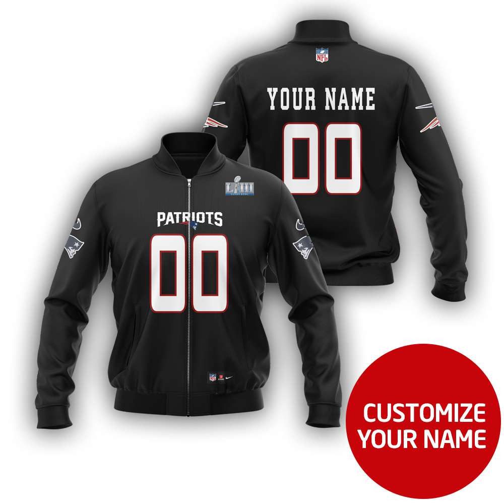 New England Patriots #00 Personalized Black Jersey Style Gift With Custom Number Name For Patriots Fans Bomber Jacket BJ03585