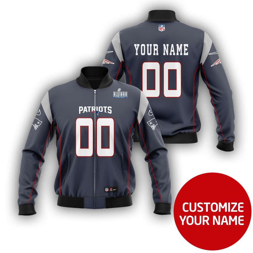 New England Patriots #00 Personalized Midnight Blue Jersey Style Gift With Custom Number Name For Patriots Fans Bomber Jacket BJ03647