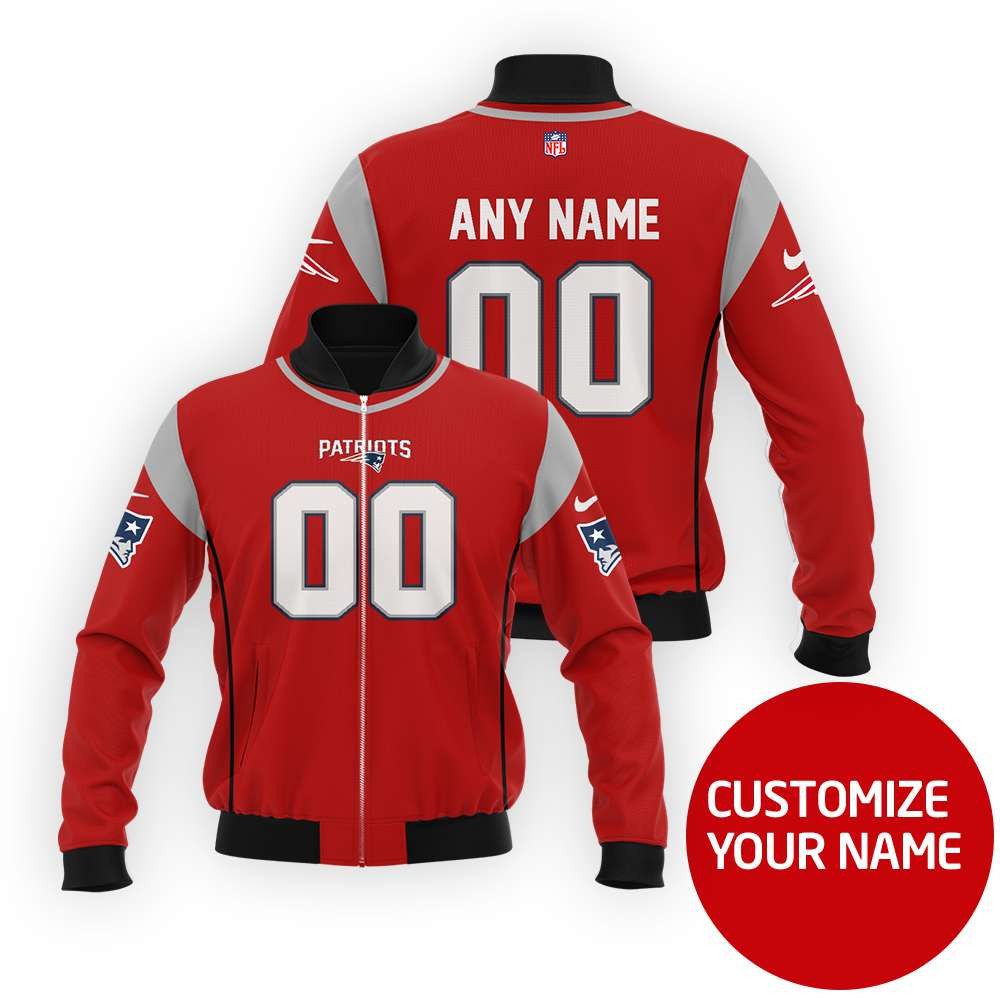 New England Patriots Super Bowl Champions Jersey Style Personalized Number Name Red Gift For Patriots Fans Bomber Jacket DACA3748