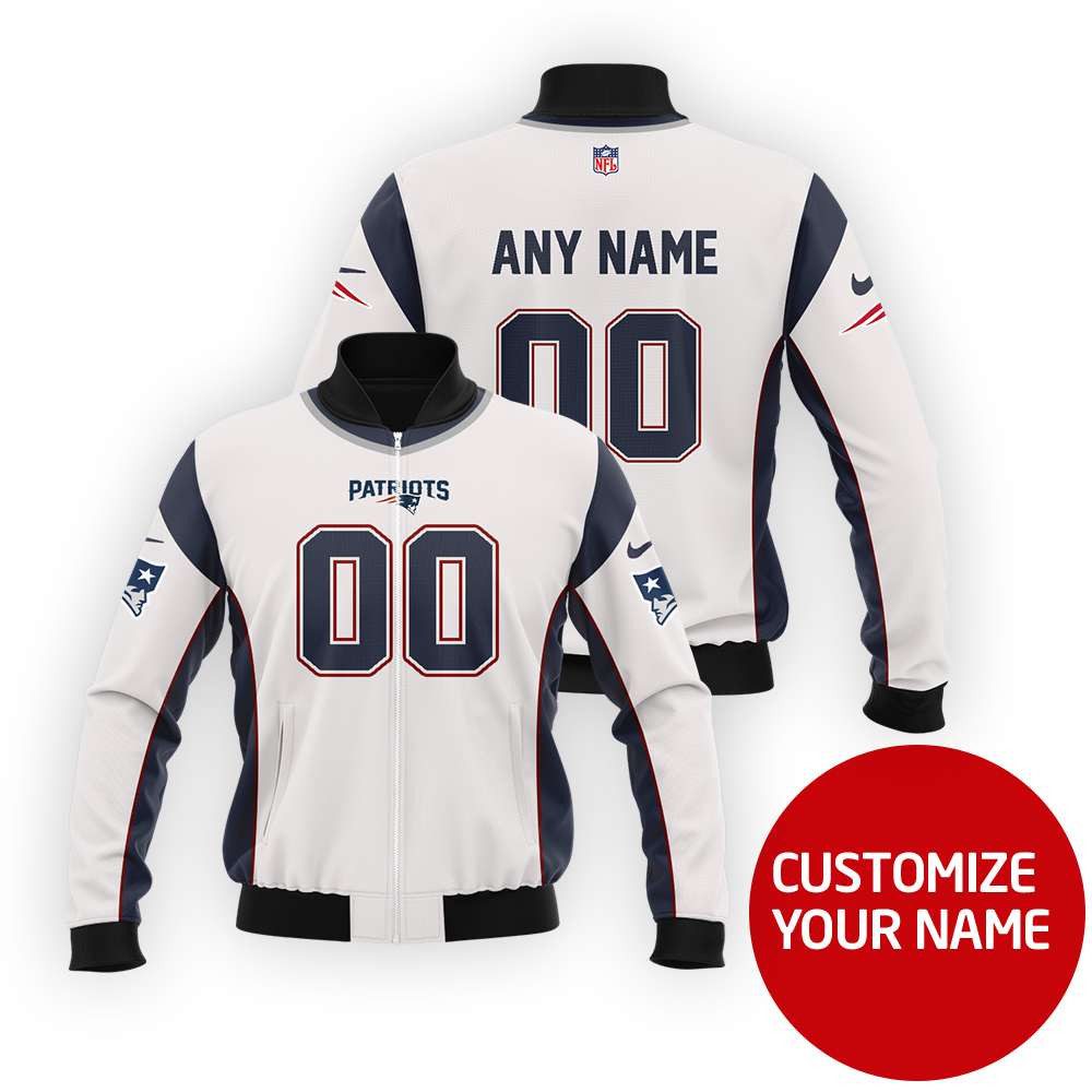 New England Patriots Super Bowl Champions Personalized Number Name White Gift For Patriots Fans Bomber Jacket DACA3674