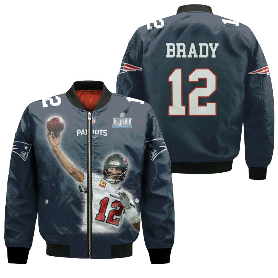 New England Patriots Tom Brady 12 NFL Great Player Navy Gift For Patriots Fans Bomber Jacket DACA0492