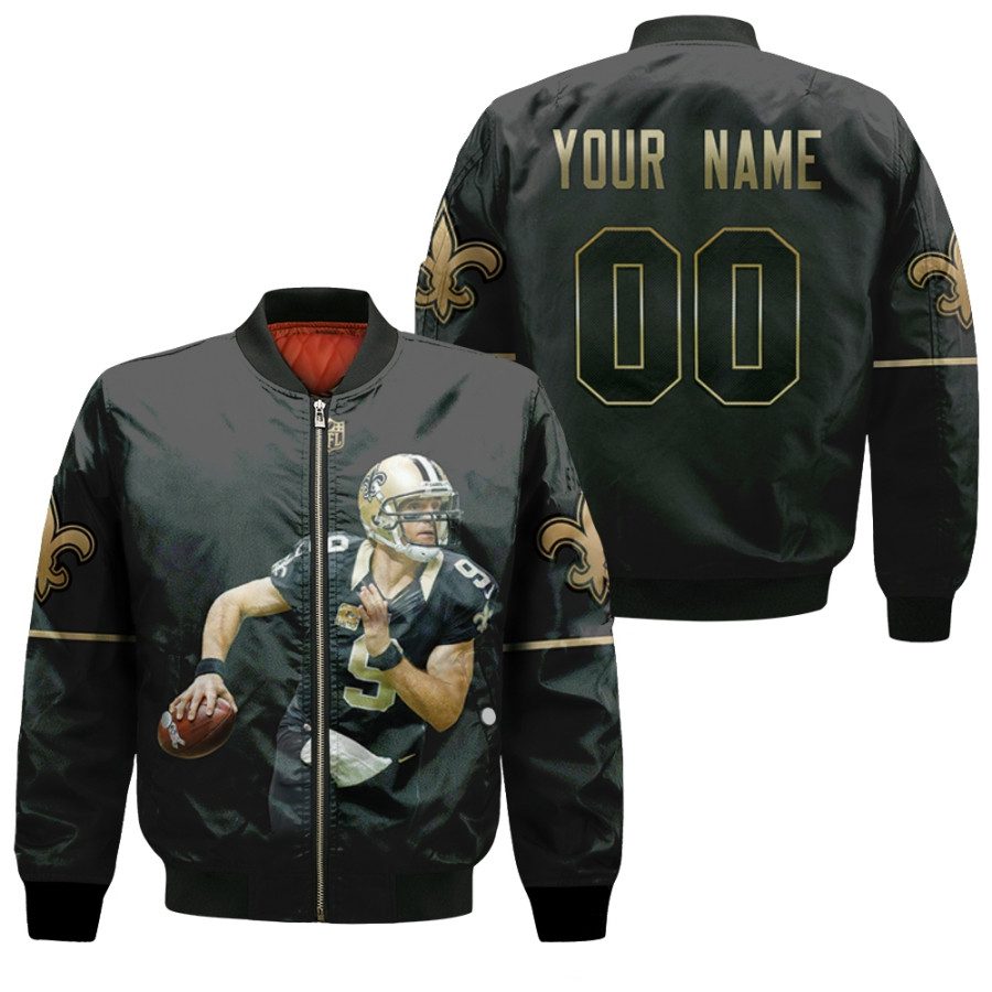 New Orleans Saints Drew Brees 9 NFL Black Golden Edition 3D Personalized Name For Saints Fans Bomber Jacket BJ04162
