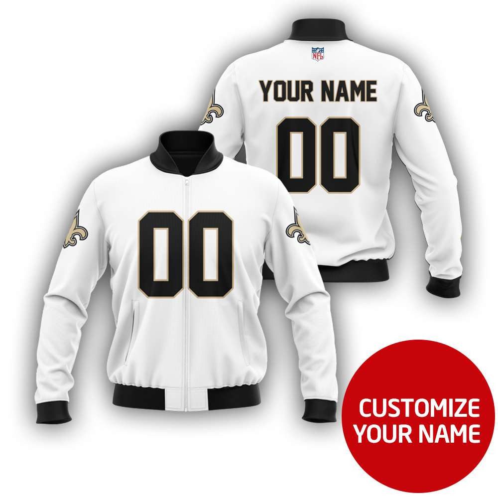 New Orleans Saints Super Bowl 100 Anniversary Personalized Number Name White Gift For Saints Fans Bomber Jacket BJ03854