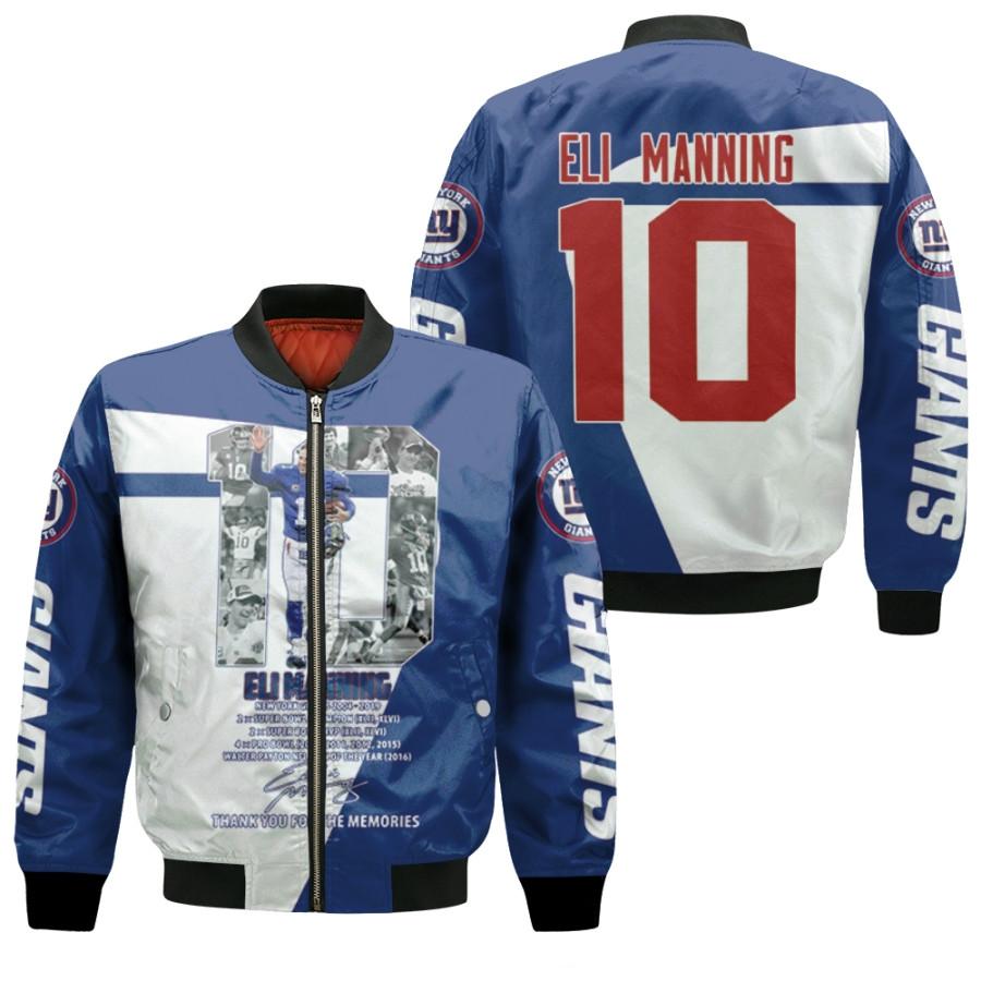 New York Giants Eli Manning 10 NFL Thank You For The Memories Signed 3D Allover Gift For Giants Fans Bomber Jacket BJ00152