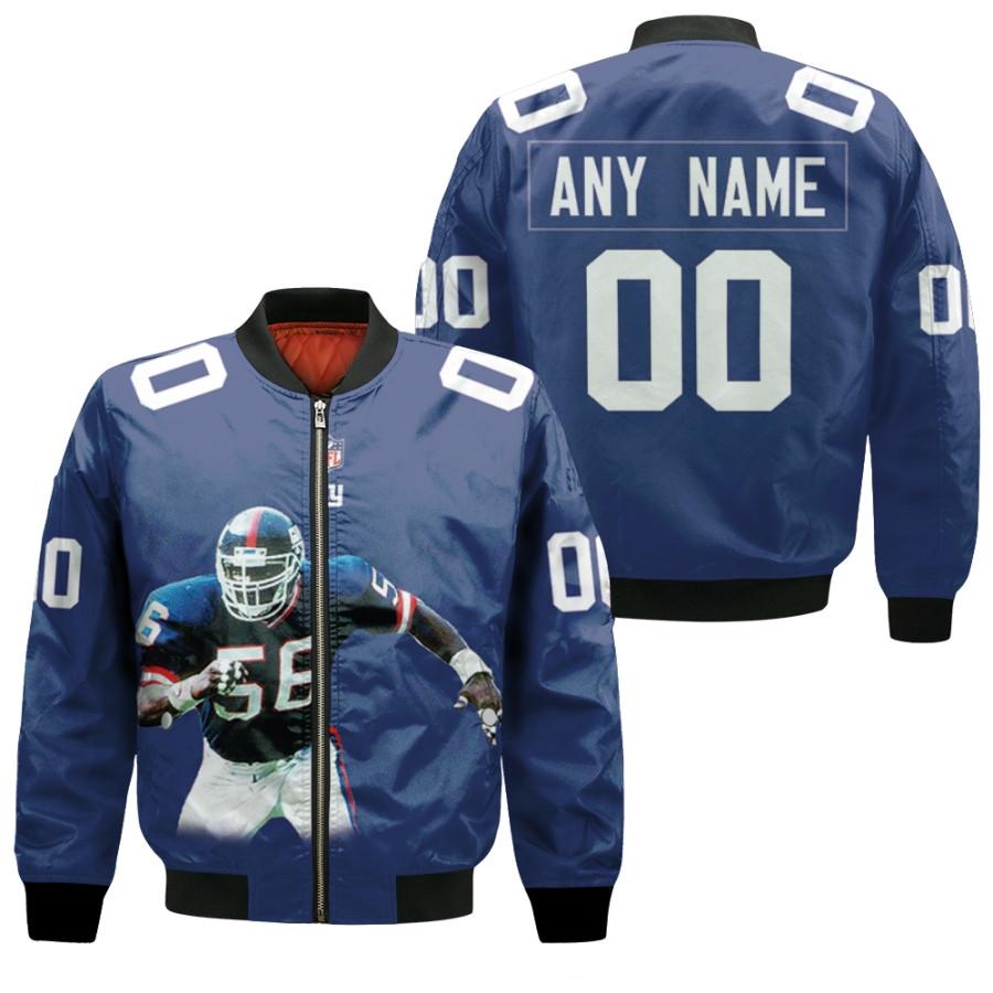 New York Giants Lawrence Taylor 56 NFL Great Player Royal 3D Giants Fans Bomber Jacket DACA4231