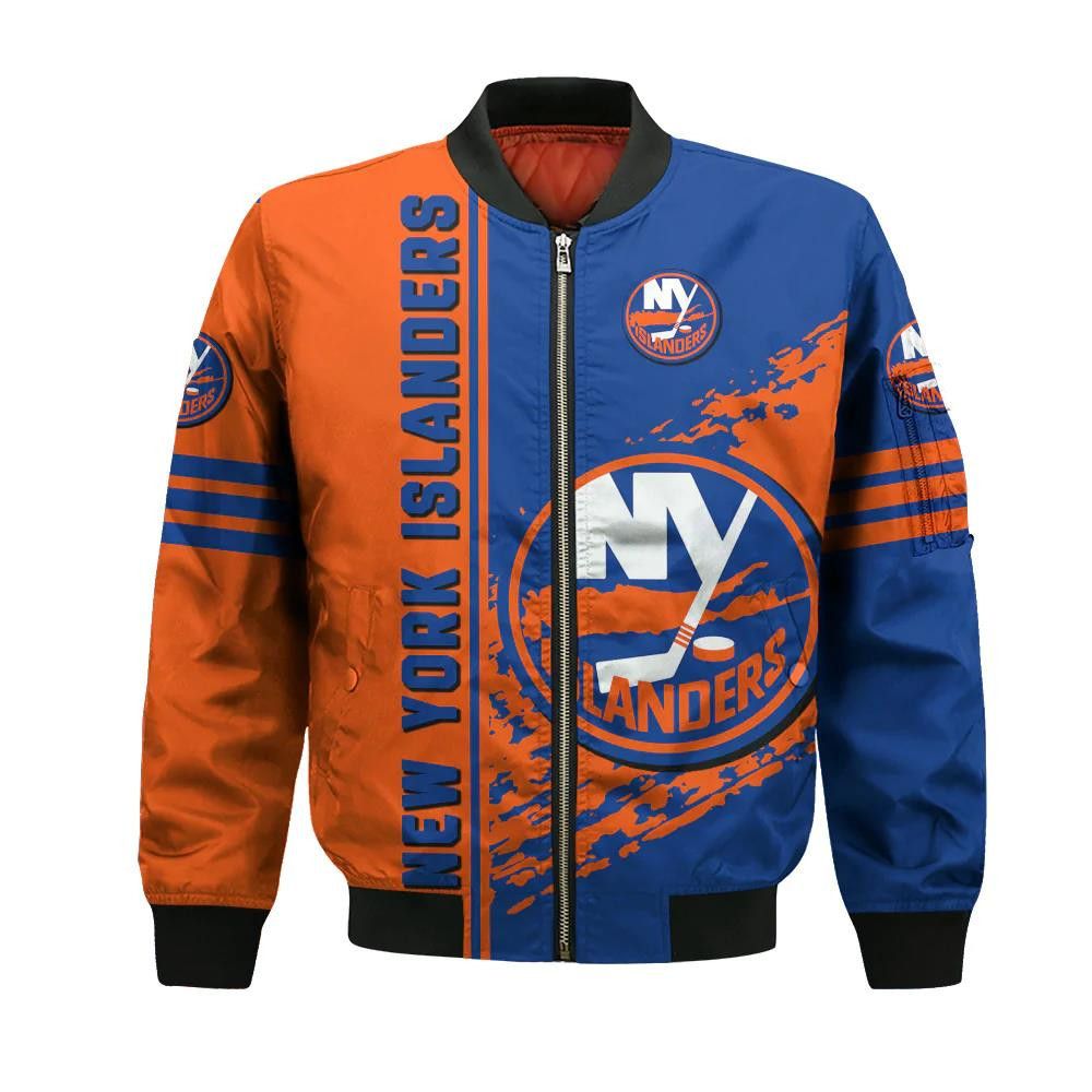 New York Islanders Bomber Jacket 3D Printed Logo Pattern In Team Colours