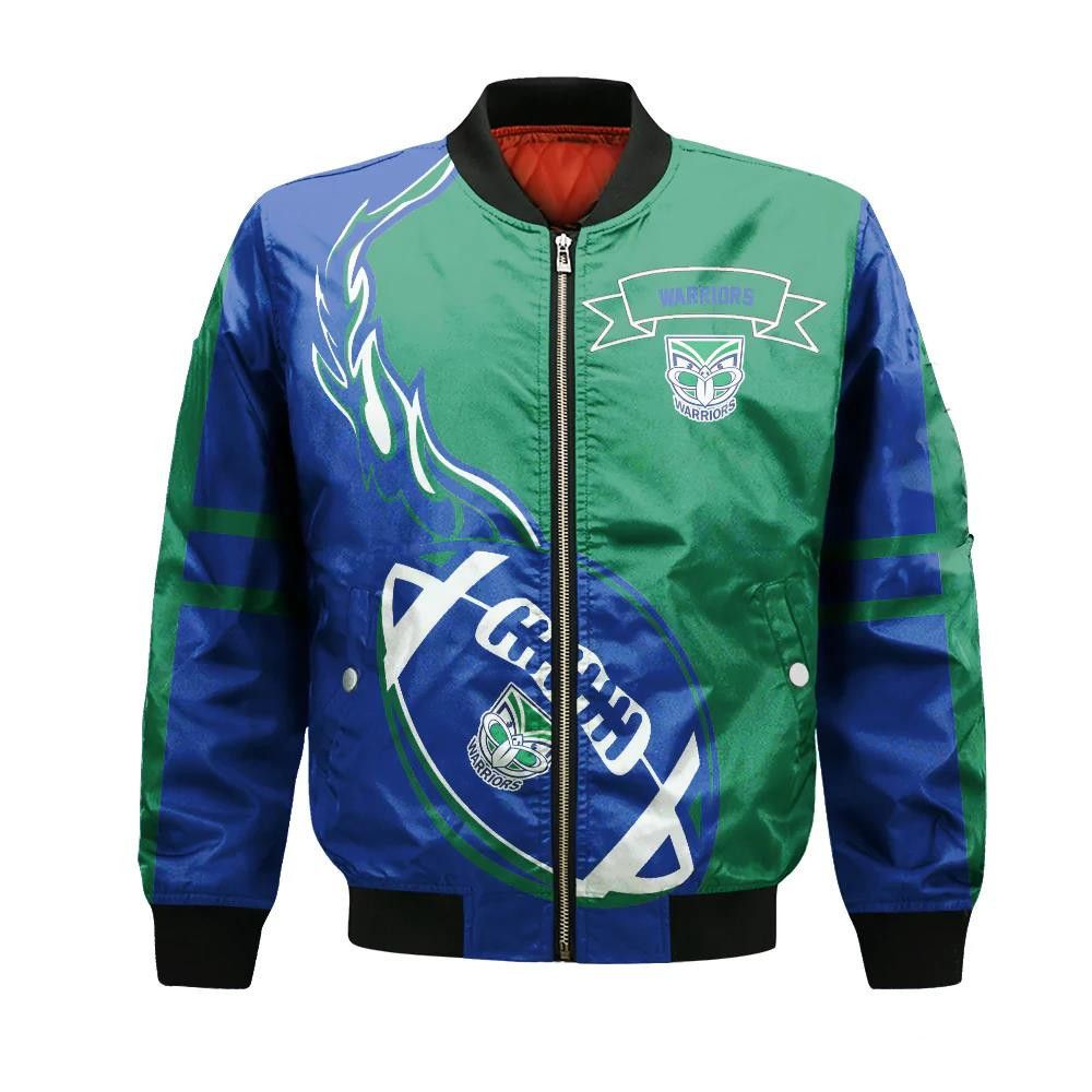 New Zealand Warriors Bomber Jacket 3D Printed Flame Ball Pattern