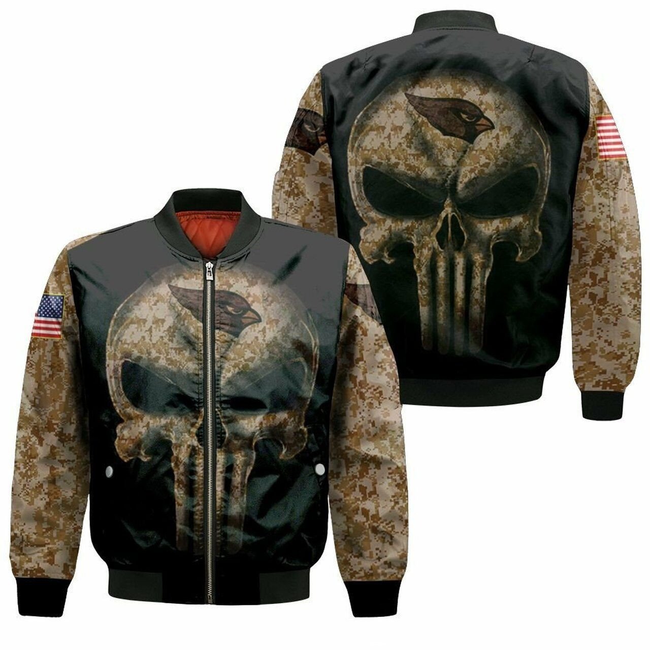 NFL Arizona Cardinals Punisher Skull Camo Bomber Jacket