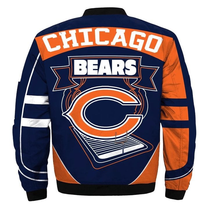 NFL Chicago Bears Orange Fire Ball Dark Blue Bomber Jacket