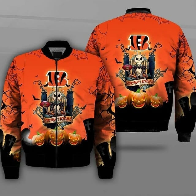 NFL Cincinnati Bengals Jack Skellington Halloween Bomber Jacket