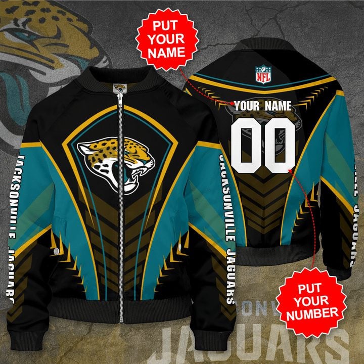 NFL Jacksonville Jaguars Custom Name Number Black Teal Bomber Jacket