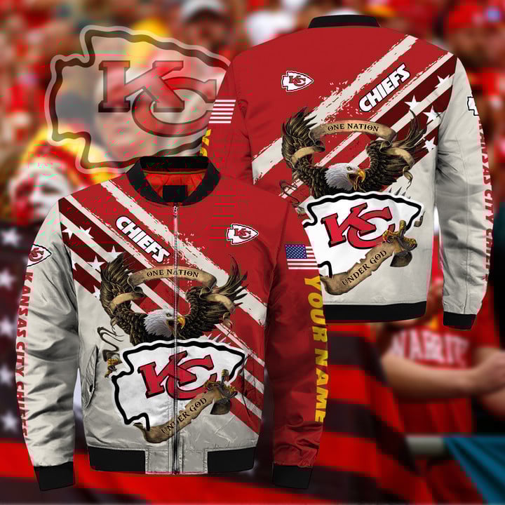 NFL Kansas City Chiefs Custom Name Red Cream Bomber Jacket