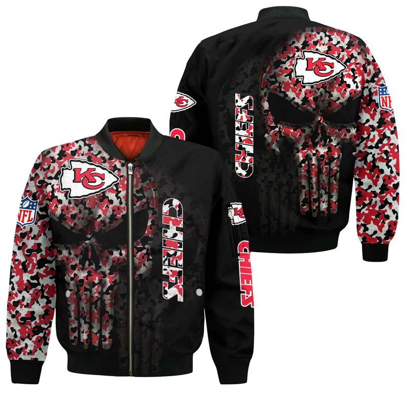 Be the first to review “NFL Kansas City Chiefs Skull All Over Print Bomber Jackets Size S-5XL NEW007410”